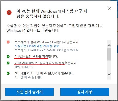 ① Windows11 호환성 확인 앱 (* 인텔 8세대, Ryzen 2세대부터 지원)