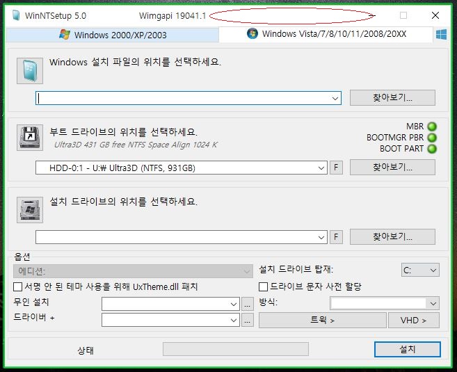 잘되는게 확인된.... WinNTSetup v5.0 버전도 한번 검토해 보시기 바랍니다.