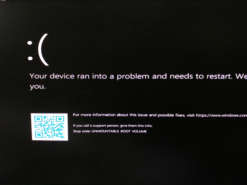 ▲ Rufus툴로 WTG만들기 이미지 적용 후.. 최초 부팅~ 초기 부팅 단계에서.. 바로 에러가 나네요!!