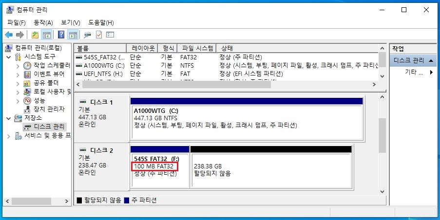 ㅁ "100MB, FAT32 파티션"이 만들어진게 확인됩니다.