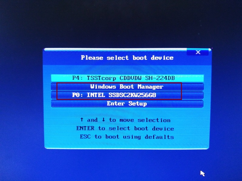 ▲ 부팅 디바이스 창을 보면.. 인텔 545s 256GB가.. 레거시/UEFI 2가지 방식으로 잘 잡히네요 ^^..
