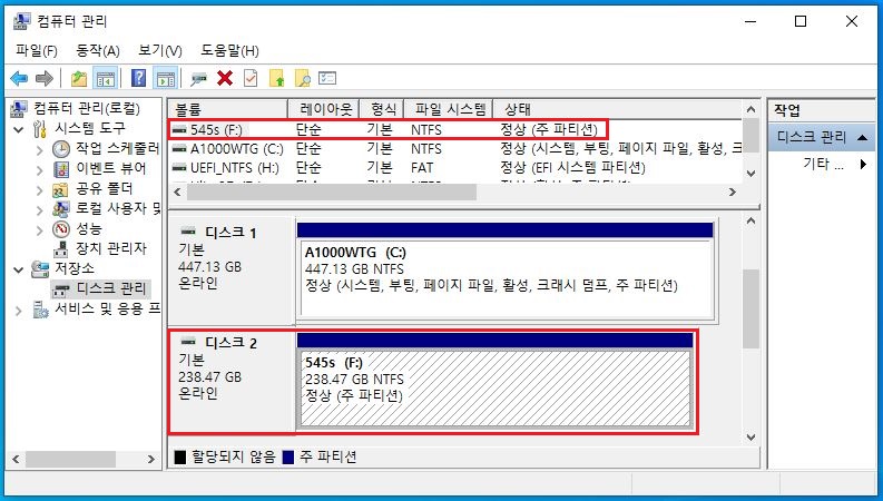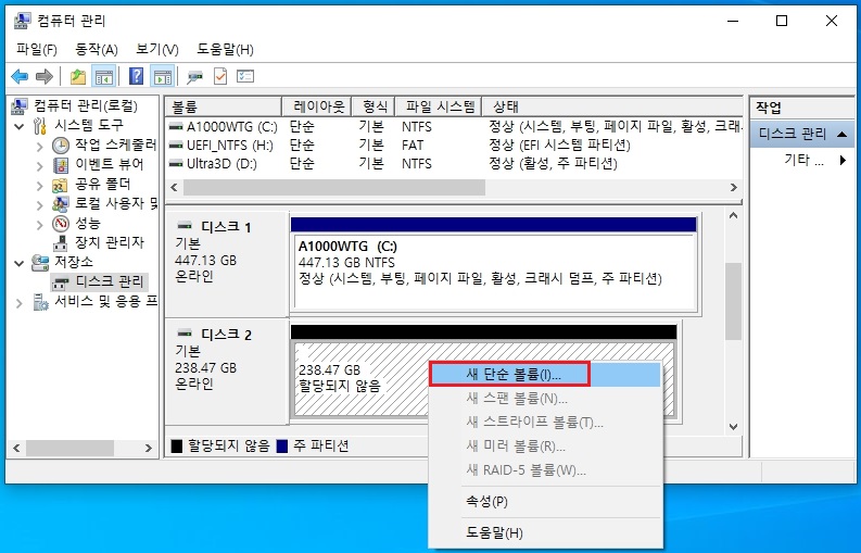* 초보자분들을 위해서.. 디스크관리자로만 진행하도록 하겠습니다.