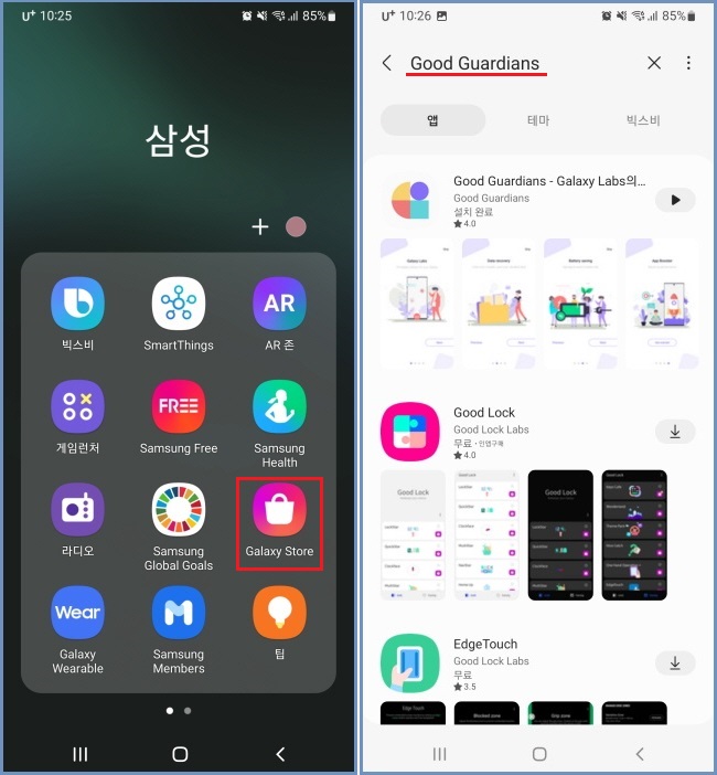 ㅁ 갤럭시 스토어 실행 후 검색창에 "Good Guardinas"을 입력합니다.
