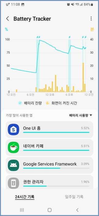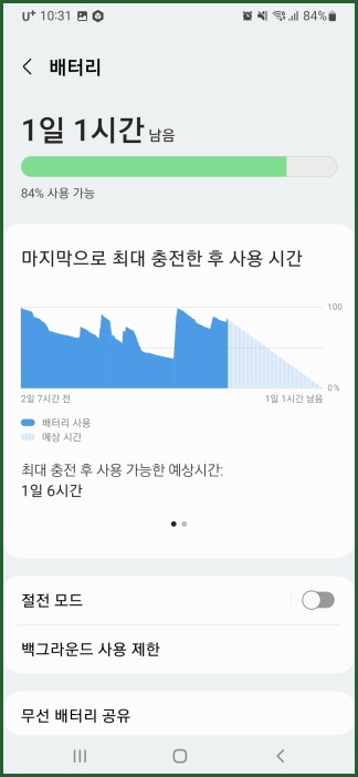 ㅁ 설정에서 "배터리 및 디바이스 케어"로 들어가면 됩니다.
