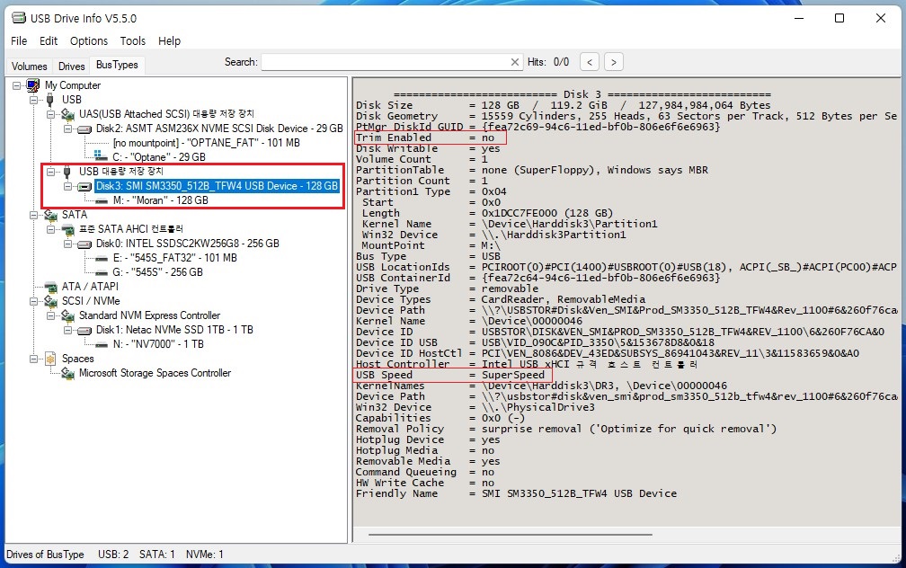 ③ USB Drive Info v5.5.0.. Trim미지원!!