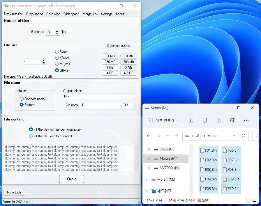 ㅁ 40GB(4GB * 10개) Test 파일을 생성!!