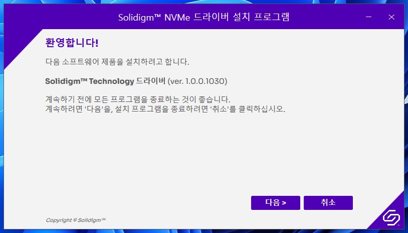 * 솔리다임 드라이버를 다운받아 설치를 진행해 줍니다. (* 설치과정 생략)