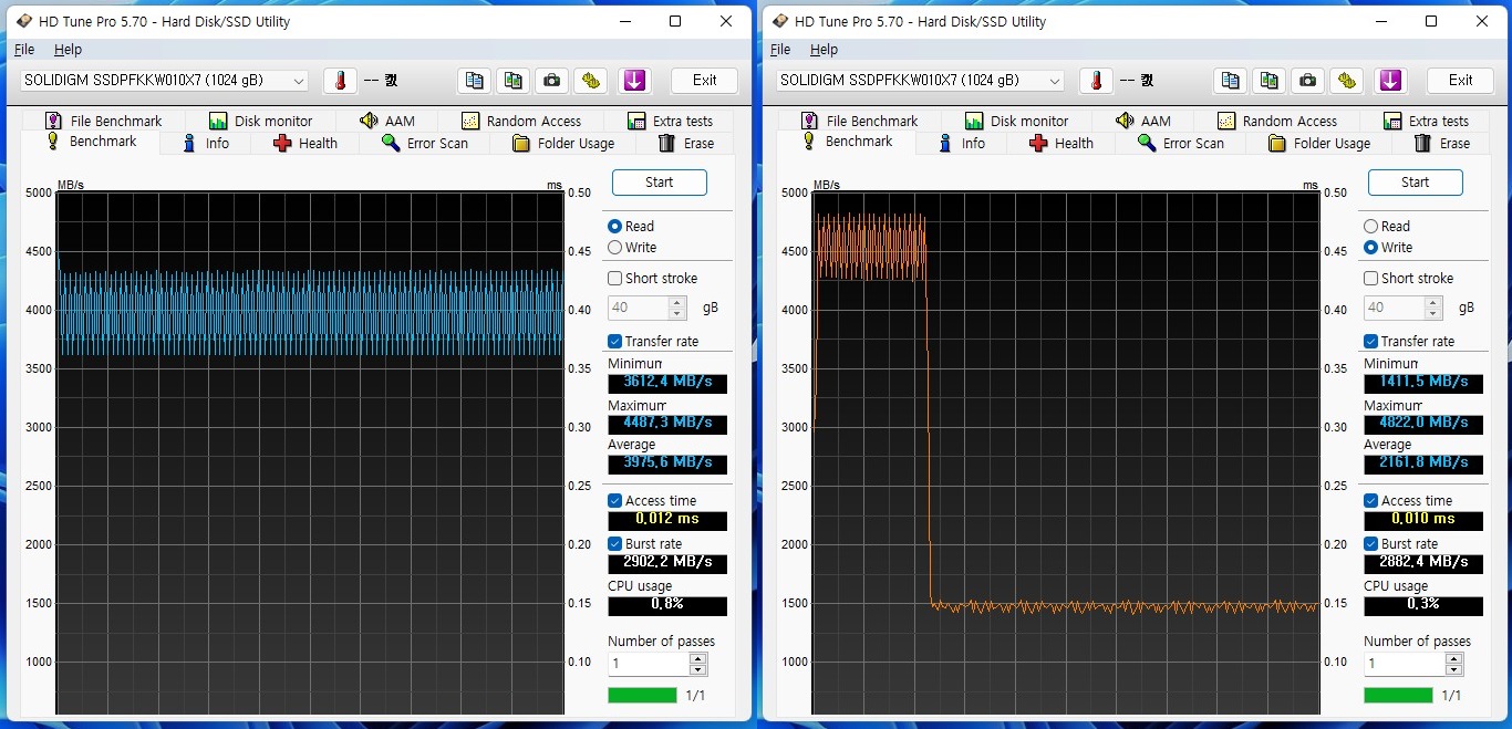 - 실제 사용자 Data가 저장된 TLC 낸드 Low영역의 성능을 반영하지 못함을 감안해서 참고해 보시기 바랍니다.
