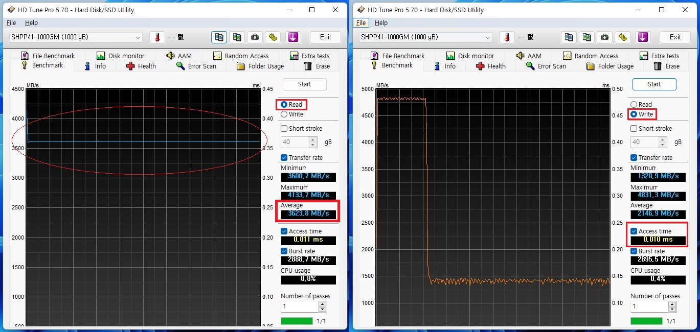 ● (중간의견) 이전 P41 1TB 결과와 오차범위 수준 거의 동일하게 나오고 있습니다.