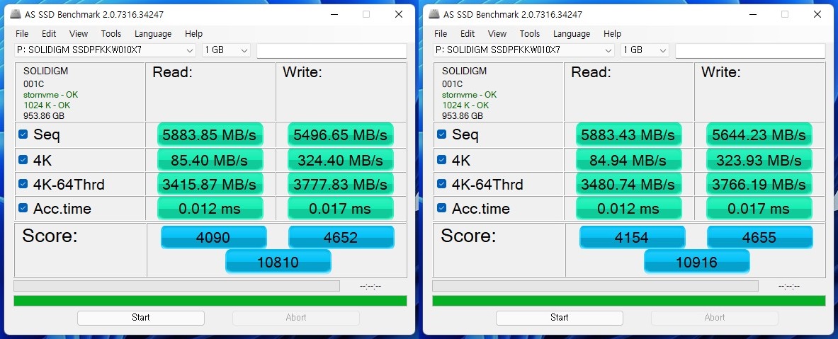 * 이번에는, 솔리다임 NVMe 드라이버를 설치 후 Max벤치값을 비교해 봤습니다.
