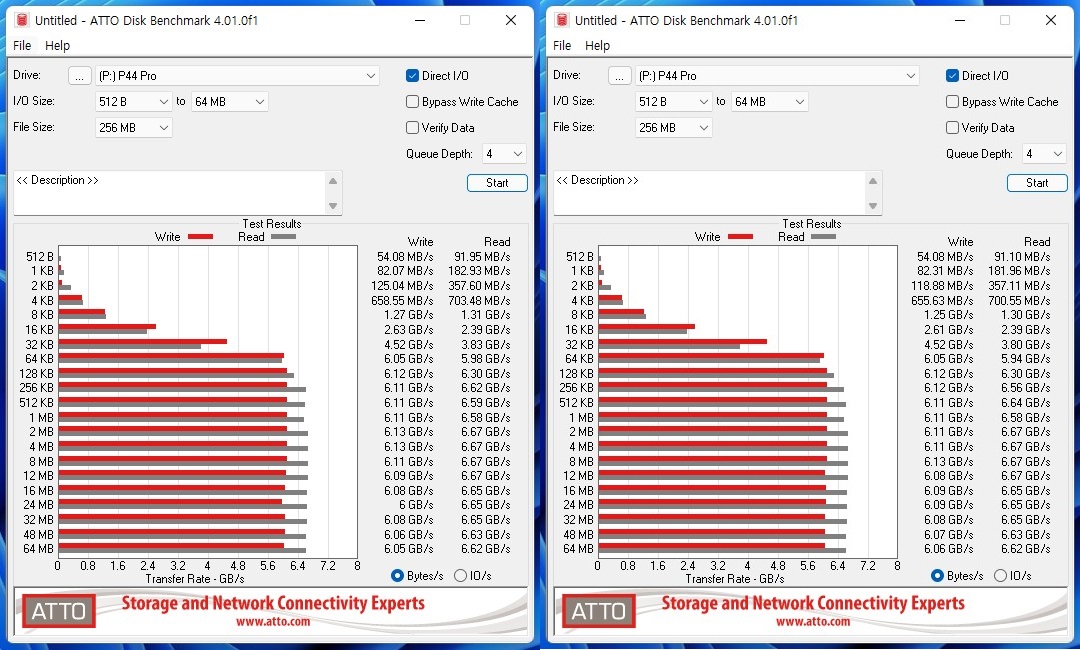 * ATTO 벤치마크는?? IO Size별로 Seq Read/Write 최대속도를 확인할 수 있는 훌륭한 툴입니다.