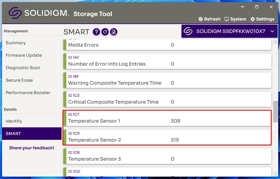 ㅁ Solidigm Storage Tool v1.7 SMART정보