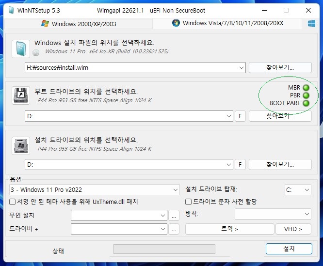 ㅁ 그리고, WinNTSetup툴을 이용하여 윈도우 작업을 진행합니다.
