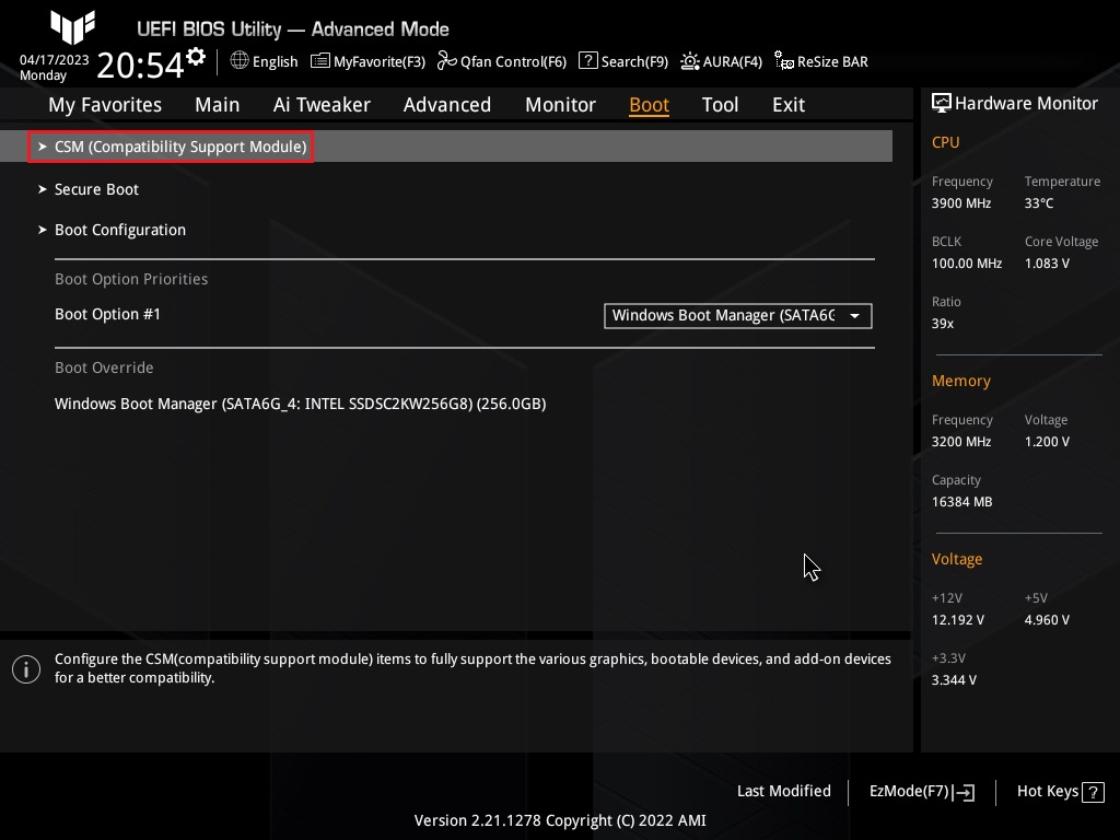 ① 그래도, 레거시 방식으로 설치를 하려고 한다면.. 바이오스단에서 CSM 활성화를 해 주어야 합니다.